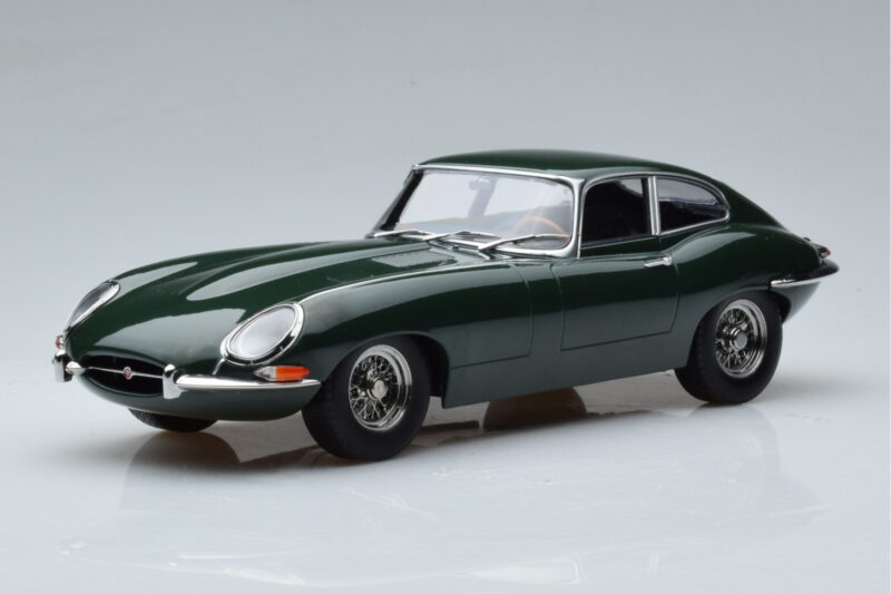 The Jaguar E-Type Series 1 British Racing Zöld KK-Scale 1:18 is crafted from Fém. Die-cast zinc alloy body with detailed plastic parts, rubber tires, and high-quality paint finish. Die-cast models are known for their weight, durability, and realistic feel.