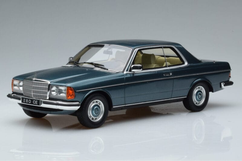 A 1:18 scale model measures approximately 25-28 cm (approximately 10-11 inches). The Mercedes 280 CE C123 Kék Otto 1:18 is perfect for display in a glass cabinet or on a shelf.