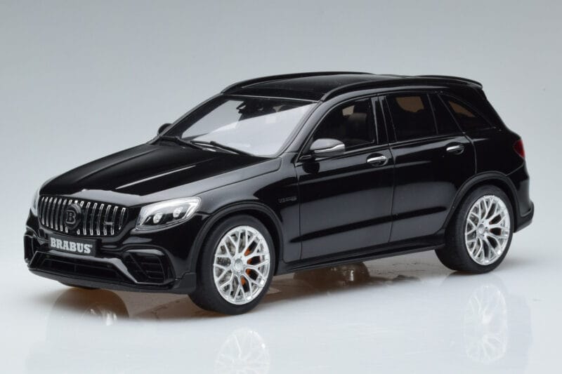A 1:18 scale model measures approximately 25-28 cm (approximately 10-11 inches). The Mercedes GLC Brabus 600 X253 Fekete GT Spirit 1:18 is perfect for display in a glass cabinet or on a shelf.