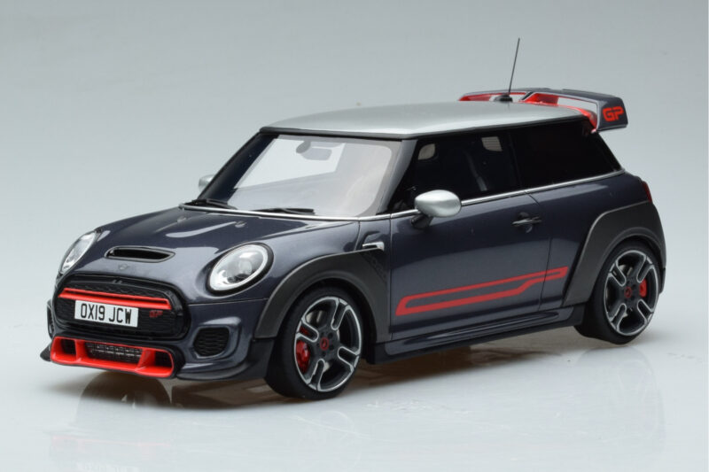 A 1:18 scale model measures approximately 25-28 cm (approximately 10-11 inches). The Mini John Cooper Works GP F56 Szürke Otto 1:18 is perfect for display in a glass cabinet or on a shelf.