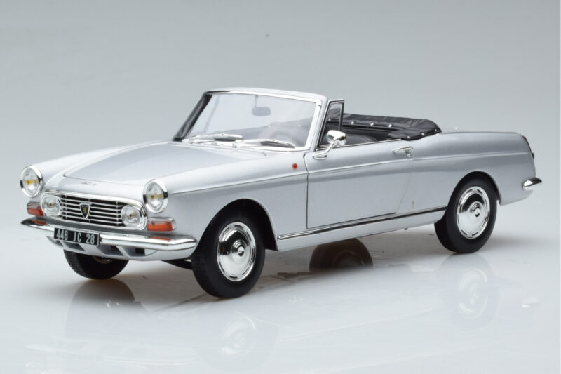 The Peugeot 404 Kabrió Ezüst Norev 1:18 is crafted from Fém. Die-cast zinc alloy body with detailed plastic parts, rubber tires, and high-quality paint finish. Die-cast models are known for their weight, durability, and realistic feel.