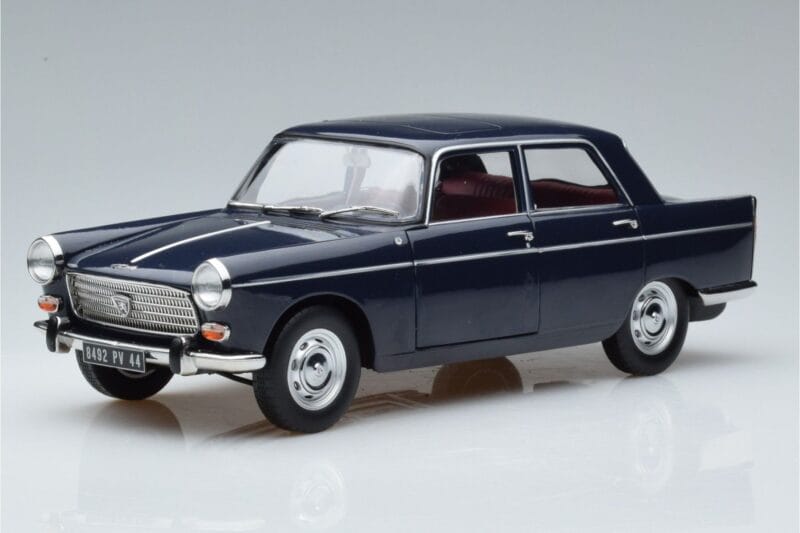 The Peugeot 404 Kék Norev 1:18 is crafted from Fém. Die-cast zinc alloy body with detailed plastic parts, rubber tires, and high-quality paint finish. Die-cast models are known for their weight, durability, and realistic feel.