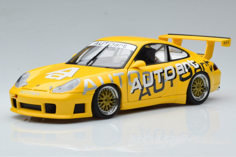 The Porsche 911 996 GT3 Cup AUTOart Livery AUTOart 1:18 is crafted from Fém. Die-cast zinc alloy body with detailed plastic parts, rubber tires, and high-quality paint finish. Die-cast models are known for their weight, durability, and realistic feel.
