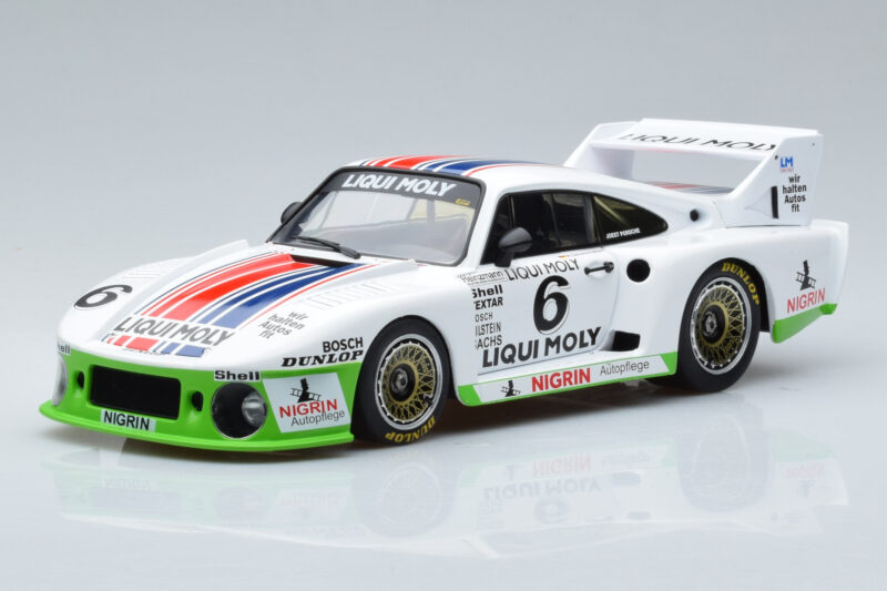 The Porsche 935J #6 Liqui Moly Spa-Francorchamps DRM 1980 MCG 1:18 is crafted from Fém. Die-cast zinc alloy body with detailed plastic parts, rubber tires, and high-quality paint finish. Die-cast models are known for their weight, durability, and realistic feel.